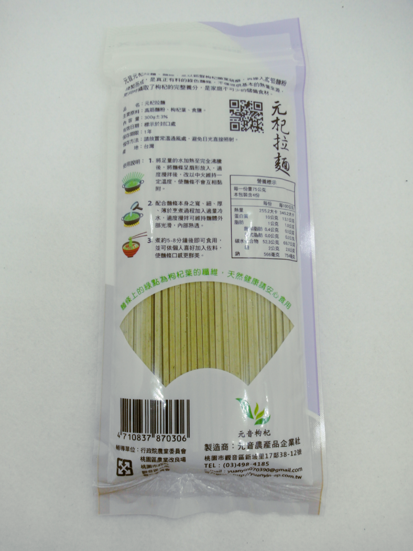 內容: 包裝 內含300g±3%枸杞麵/1入